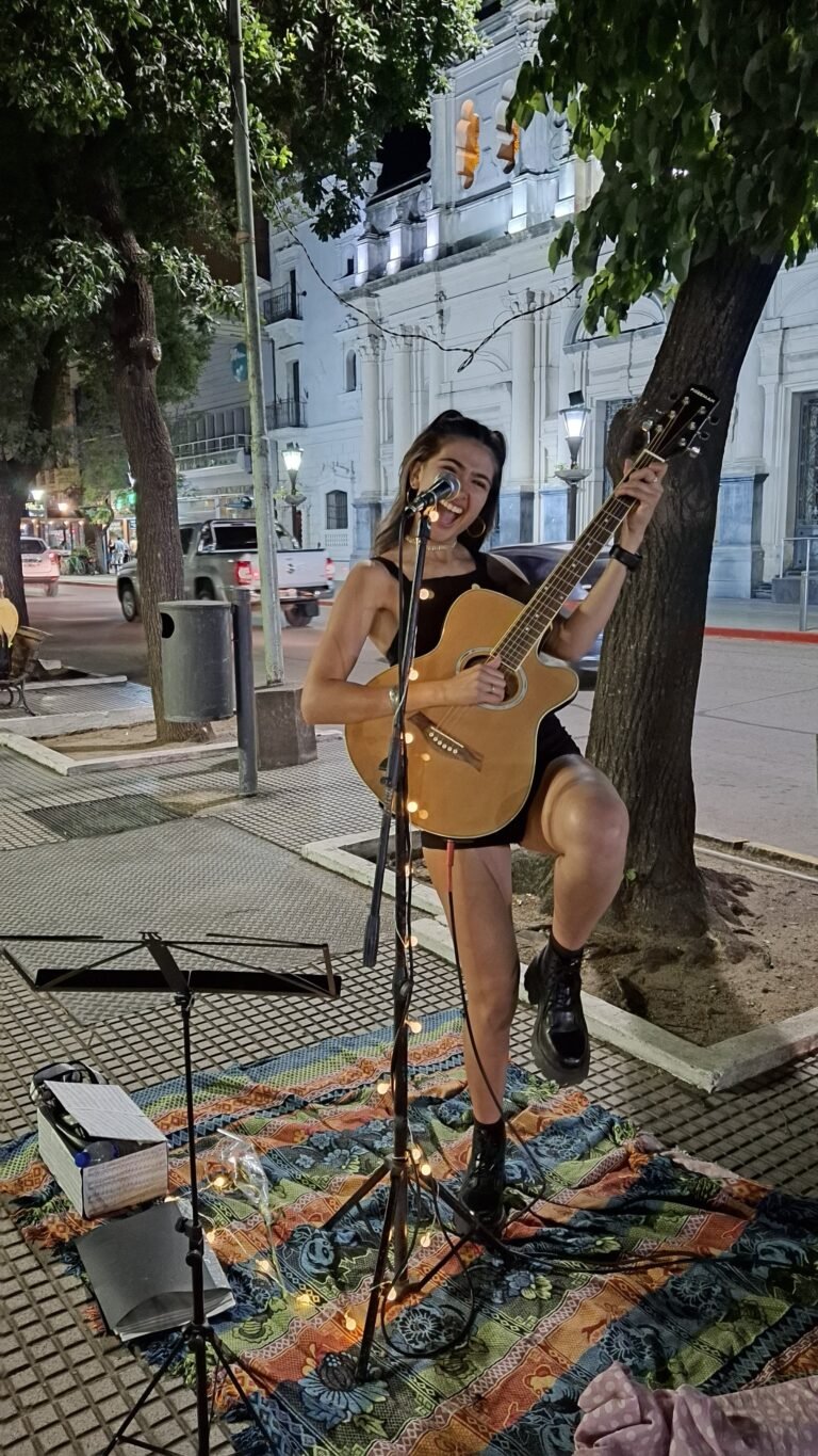 – Mi primera presentación fue en la Plaza Roca junto a mis compañeros del taller de música -que tomé a mis 12 años-. Sentí una ensalada de emociones ese día: nervios, alegría, ansiedad, entusiasmo, susto y sorpresa por la cantidad de personas que había. Pero mi profe era de esas personas que, si bien son un torbellino, en momentos así transmiten calma y seguridad. Me guiñó el ojo, asintió con la cabeza y empezó el show.
